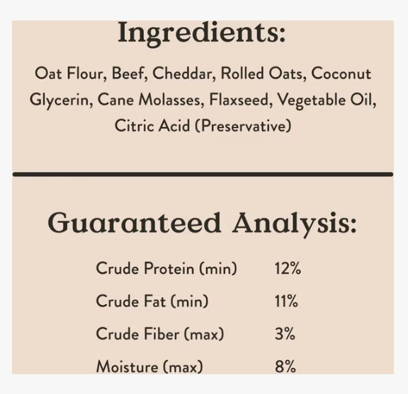 Oat Flour, Beef, Cheddar, Coconut Oil