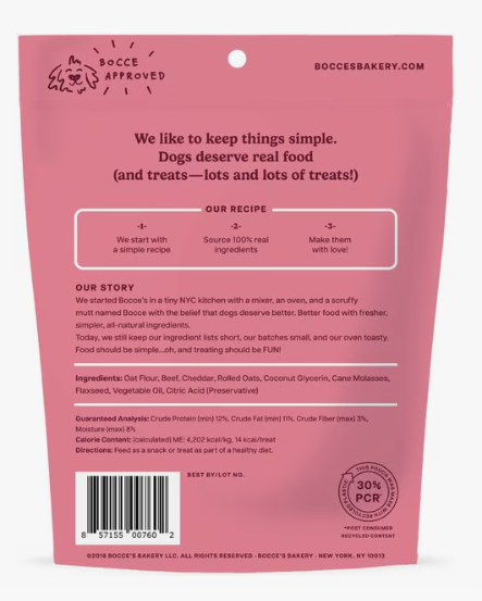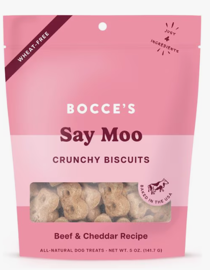 Bocce's Say Moo Beef & Cheddar Crunchy Dog Biscuits Treats 5 oz bag