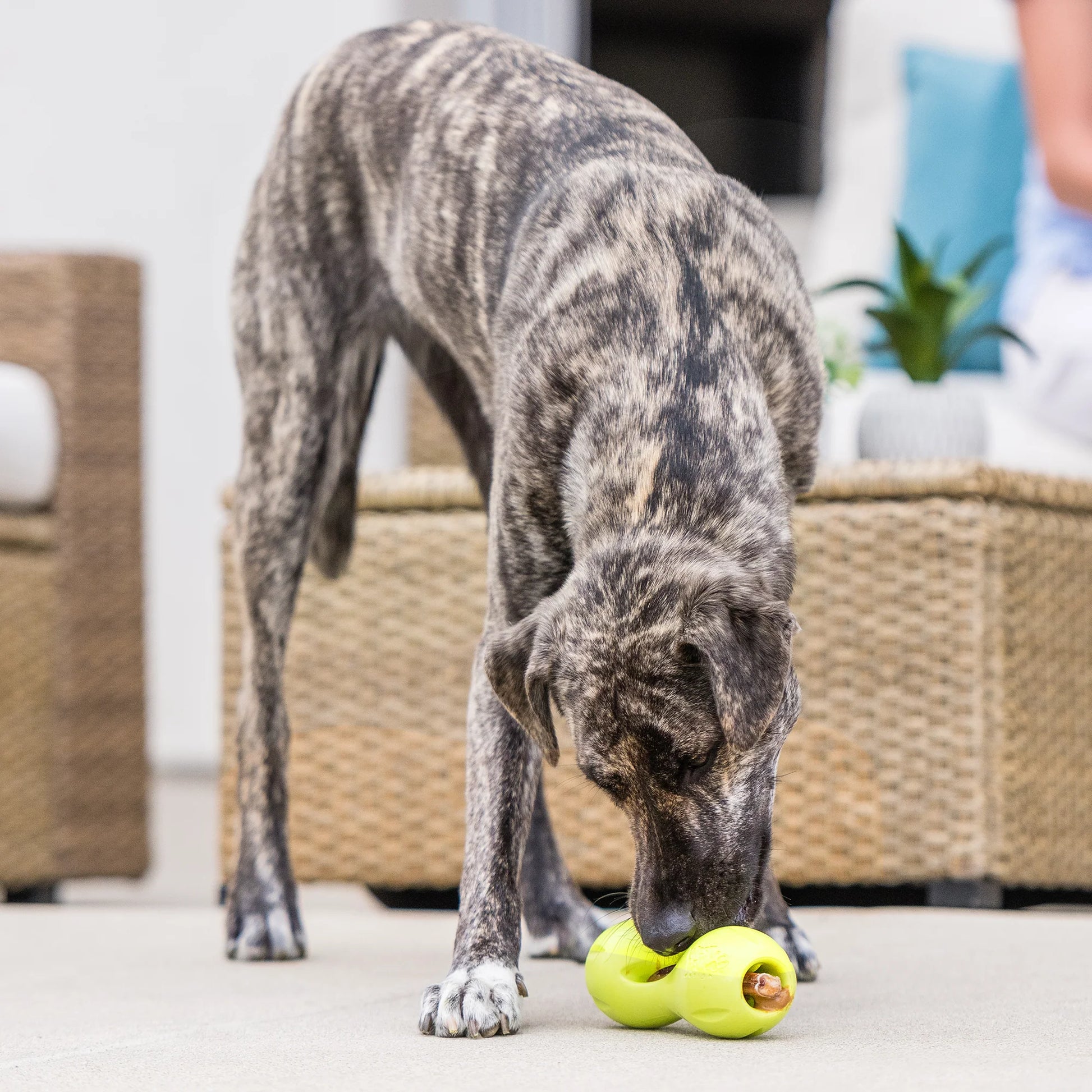 Built tough to challenge your dog’s mind and make treats last longer. Freeze for an extra-long play time! Holds bully sticks, treats, and more—while side vents release irresistible scents to keep pups engaged. Easy to grip, top-rack dishwasher safe, and made from non-toxic, zero-waste, recyclable materials.